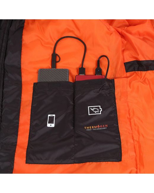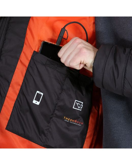 Fabric: Polyamide, Synthetic, Warmloft. Design: Plain. Battery Powered Heating System, Easy On And Off Button, Heated Back Panel, Insulated, Lightweight, Safety Cut Off. Fabric Technology: Durable, Water Repellent.