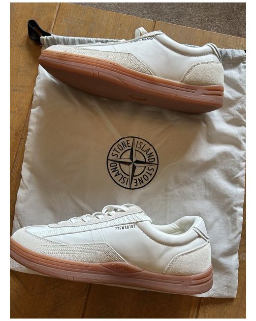 The Stone Island Men's Trainers in size 8 UK are a stylish and versatile option for casual wear. These trainers feature a classic lace-up closure, rubber cleat type, and a sleek white colour. The Stone Island brand adds a touch of authenticity and quality to these sneakers, making them a must-have for any man's wardrobe. Perfect for everyday wear, these trainers are both comfortable and fashionable, bought from the stone island store in Las Vegas but wrong size.