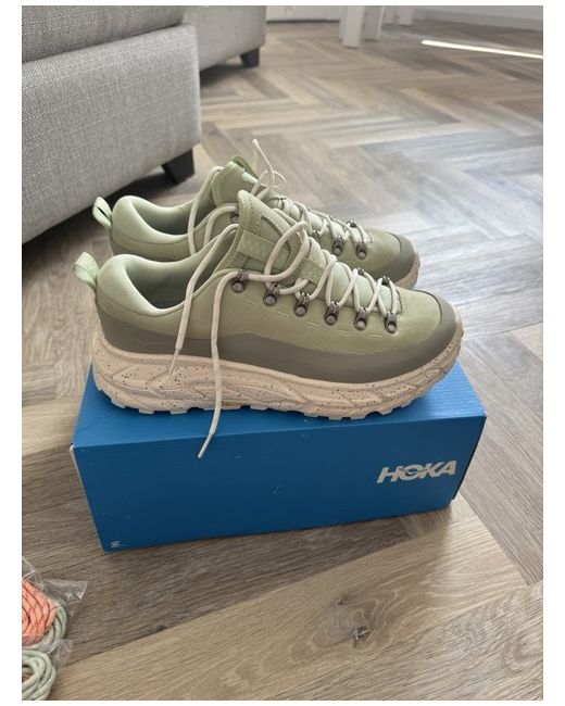 The Hoka One One Tor Summit Seed Green trainers are a stylish and high-performing option for men looking for a comfortable and durable shoe. With a sleek green colour and leather upper material, these sneakers are designed to provide both style and functionality. The Hoka One One brand is known for its quality and support, making these trainers a reliable choice for any outdoor activity. The UK and US shoe size of 9.5 ensures a perfect fit for those looking for a versatile and chic sneaker option. Brand new with box and spare laces. RETAIL IS £175