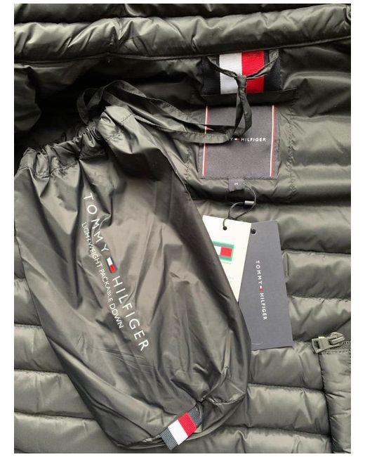 Tommy Hilfiger logo print. Care instructions:Machine wash at 30°C, Machine wash on gentle cycle. LENGTH (cm): 67 cm. SLEEVE LENGTH FROM ARMPIT (cm): 48 cm. WIDTH FROM ARMPIT (cm): 56 cm. Insulation: 90% duck down, 10%feathers.