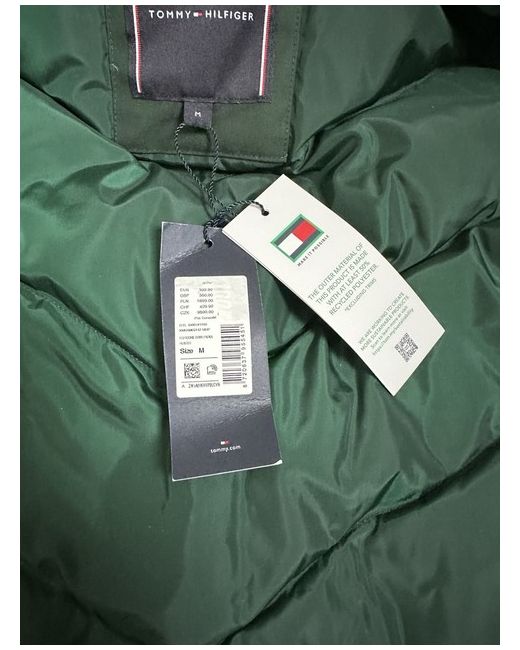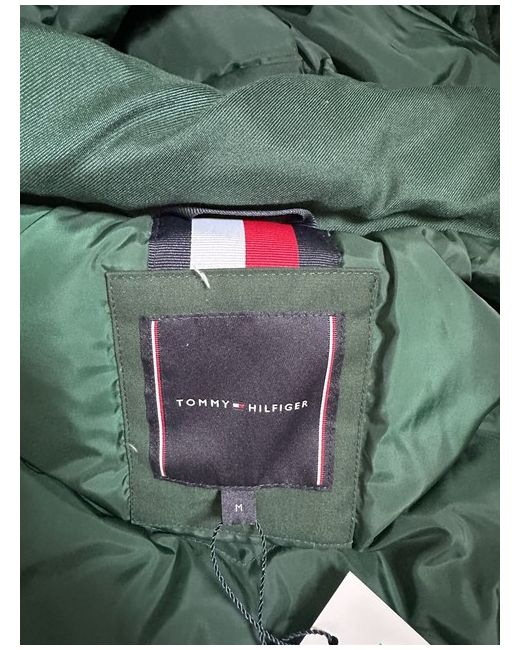 BNWT Tommy Hilfiger Down filled coat. Has double zip fastening, plus 4 large pockets on the front and one inside pocket and detachable (zip) hood. Dark green colour and size Medium. Retails at £360 Width pit to pit -23" Length shoulder to bottom of coat 32"