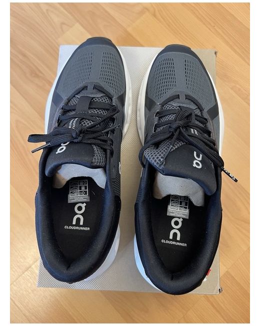 NEW ON Running Cloudrunner 2 Eclipse / Black UK 9 /EU 43 / US 9.5 Trainers BNIB Box has a small dent and slight mark on it. Trainers are brand new unworn. Key features The supportive, feel-good running shoe Helion™ superfoam midsole for big energy return Upgraded outsole that won't trap stones as you run CloudTec® cushioning to absorb impact Plush tongue for total comfort and easy step-in Durable heel clip and upper reinforcements for added support Tongue loop to keep laces in place Can post ASAP
