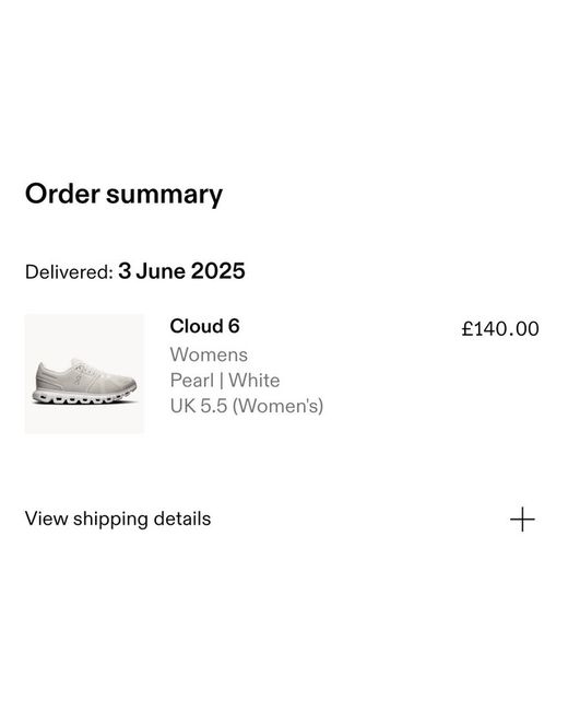 BRAND NEW NEVER BEEN OPENED ON CLOUD 6 SIZE 5.5 UK WOMENS. NEVER BEEN WORN OR OPENED, STILL IN THE DELIVERY BOX. ORDERED THE WRONG SIZE SO I’M SELLING IT AT A LOWER PRICE. £140 original price but selling it for £120 only
