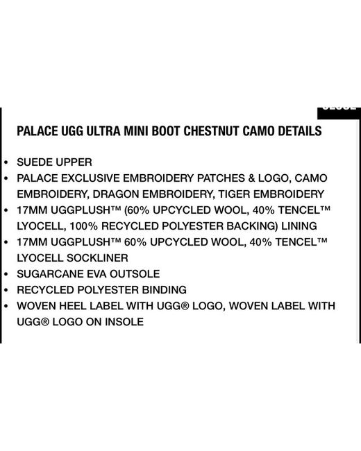 SOLD OUT PRESALE PALACE x UGG Collab Ultra mini boot slipper chestnut camo size UK 9 Have received in hand however box is damaged/creased (See Pictures) hence the low price