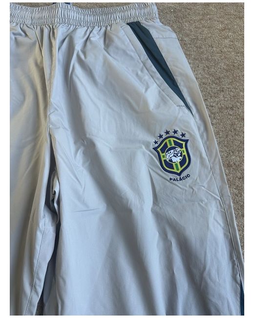 Elevate your activewear collection with these Palace Pro Team 02 Shell Jogger Trousers in Light Grey. Designed with comfort in mind, these joggers feature a stylish shell theme and are perfect for both casual and athletic occasions. Made in Brazil, these trousers are available in a size small and are a must-have for any fashion-forward man. Crafted by the renowned brand Palace, these trousers are perfect for those who appreciate quality and style. Whether you're heading to the gym or running errands, these activewear joggers will keep you looking and feeling great. Add a touch of Brazilian flair to your wardrobe with these Palace Pro Team 02 Shell Jogger Trousers. IN HAND