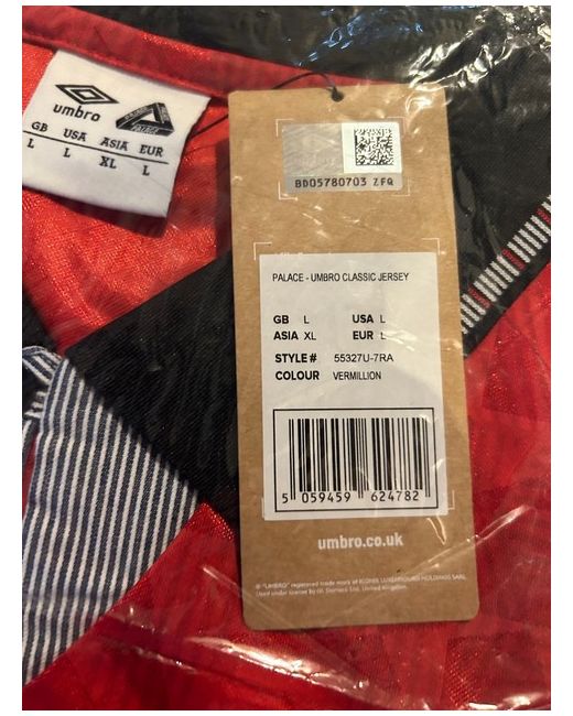 Palace x Umbro Jersey - Vermillion/Red - Size Large.