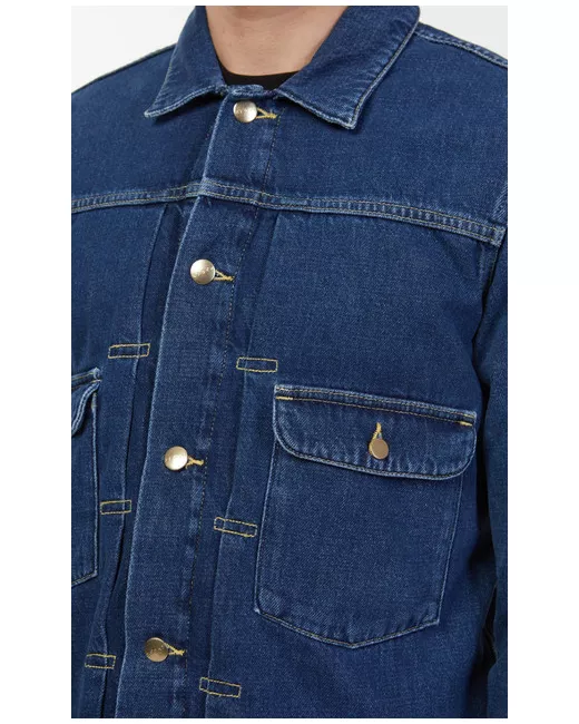 12 oz denim fabric. Style: E-Classic Jacket. - Material: 100% cotton. - Color: Blue. - Fit: Regular fit. Signature required when received.