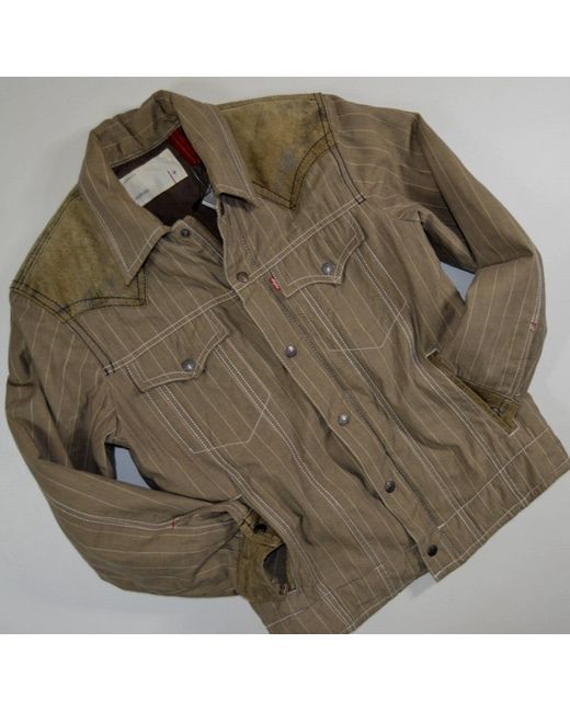 Toffee cream stripe design. leather buff patch detail. substantially padded. western style functional pockets.