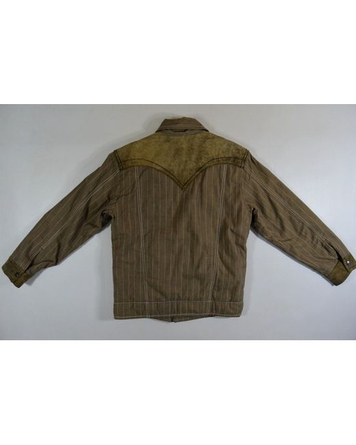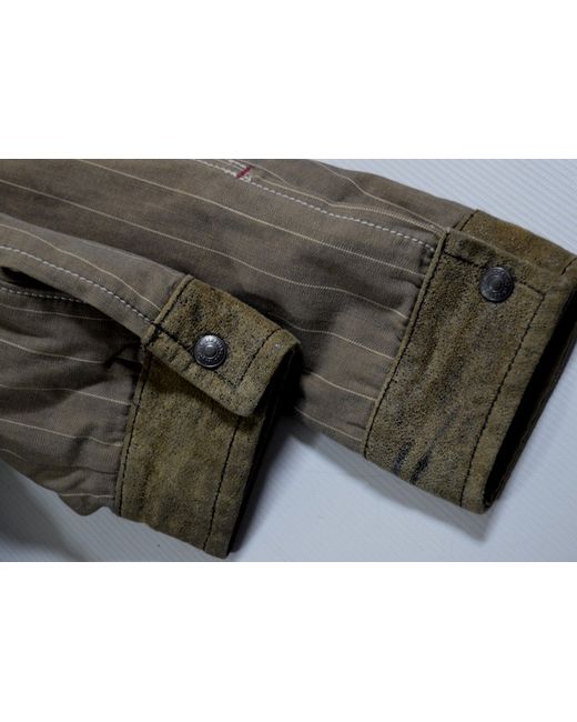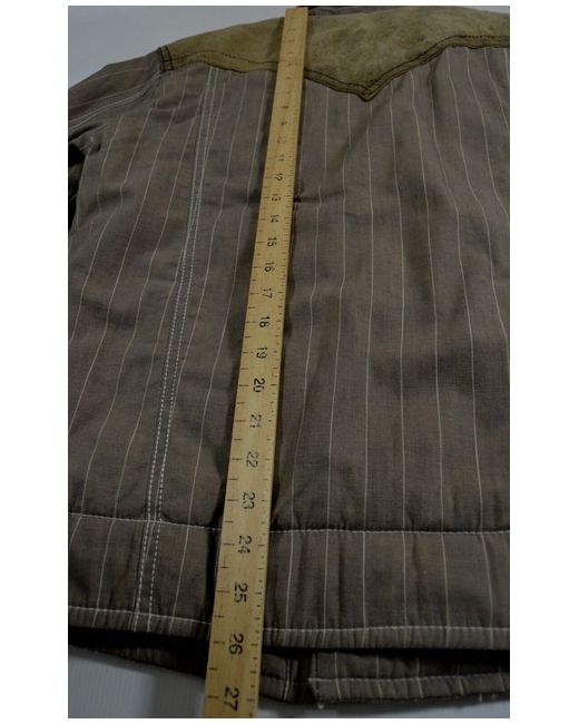 Toffee cream stripe design. leather buff patch detail. substantially padded. western style functional pockets.