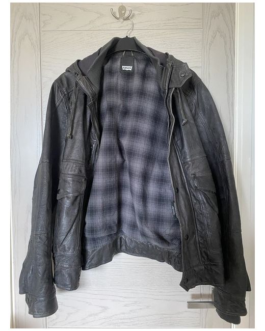 Slate grey hooded and lined Levi Leather jacket, bought but never worn.