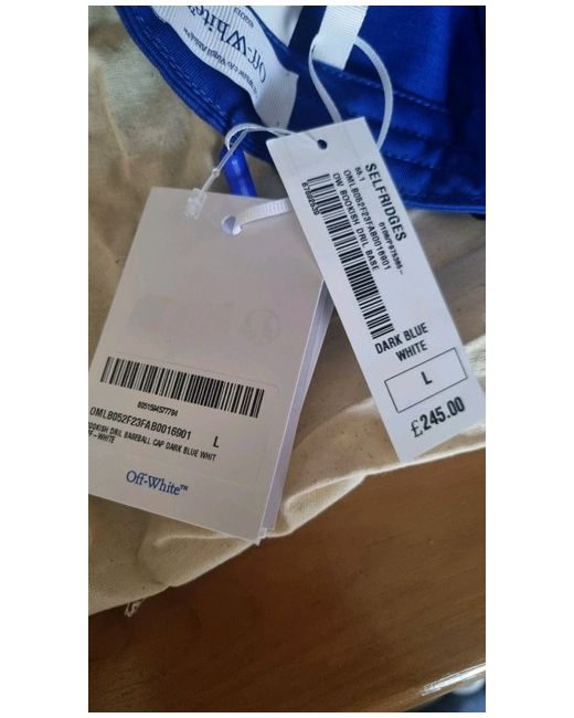 New with tags. purchased from selfridges. The OFF-WHITE c/o Virgil Abloh Drill Logo Bookish Baseball Cap in BLUE is a stylish and versatile accessory for men. Made from cotton, this adjustable baseball cap is perfect for casual occasions. The iconic Off-White brand and Virgil Abloh design add a touch of modern flair to this classic piece. The blue colour adds a bold pop to any outfit, making it a standout addition to your wardrobe.