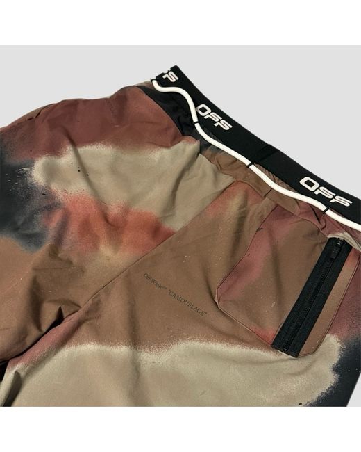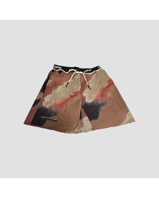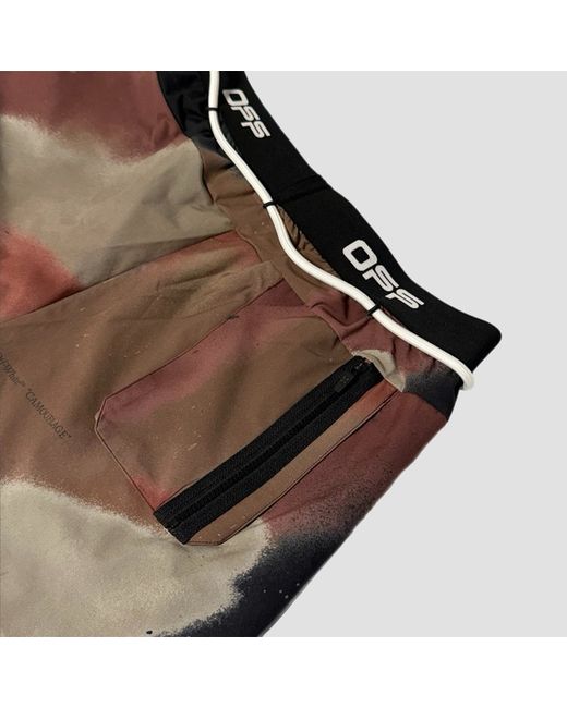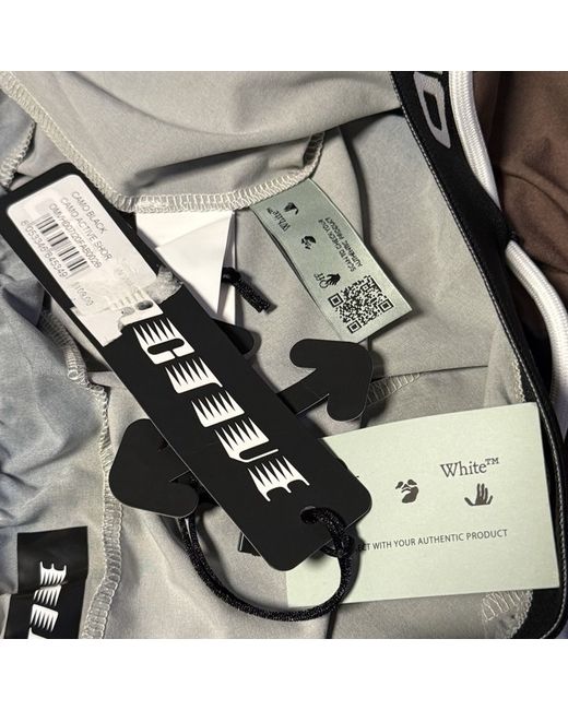 Off-White Active Shorts Camo Featuring ‘OFF’ spell out to waistband & lace tie up design in classic Off-White style. From the athletic ‘Active’ range. • RRP £160. • Full camo. • Branded logo print design to both the front & back. • 3M Reflective detailing. • Side slip pockets & back zip pocket. • Elasticated waistband. • Size Large. • Brand new with tags. MEASUREMENTS Waist - 30-35” Length down the side - 21”