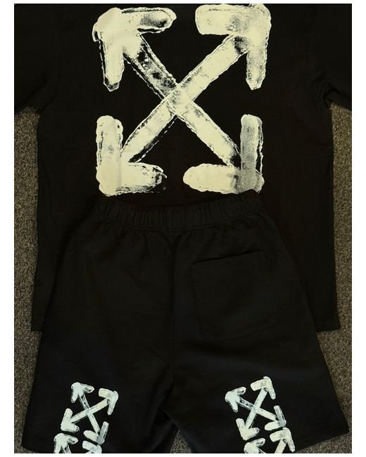 The Offwhite Spray Arrow T-Shirt Set is a stylish and comfortable addition to any man's wardrobe. Made from soft cotton material, this set includes a black shirt with a round neck and short sleeves, featuring an oversized logo accent. The regular fit and oversized style make it perfect for the summer season, adding a touch of urban edge with the Off-White brand and themed design. Ideal for casual wear, this set is a versatile choice for any man looking to make a statement with their fashion choices.