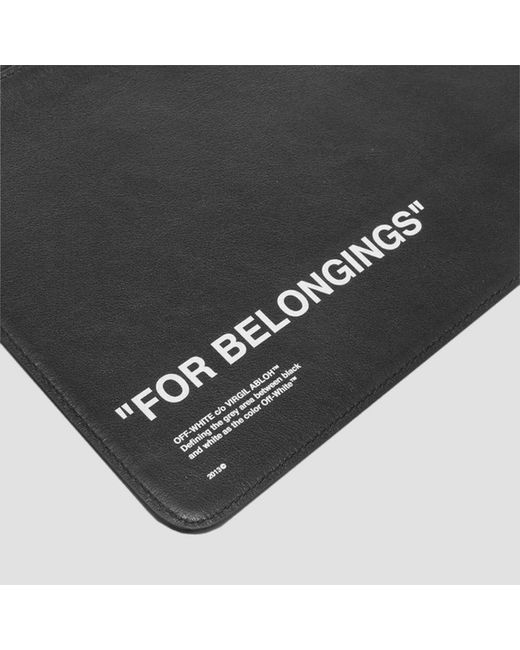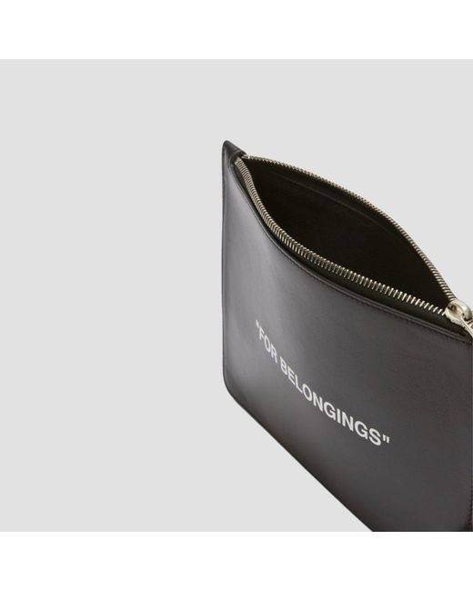 Off-White Quote Print Clutch Bag/Wallet/Pouch Black leather bold quote pouch with "FOR BELONGINGS" text printed in white at front and back. • RRP £275, sold out. • Zip closure. • 100% Calf Leather 100% Cotton lining. • Made in Italy. • Unisex. • Brand new in dust bag & authenticity card. MEASUREMENTS Width - 8 1/2” Height - 6”
