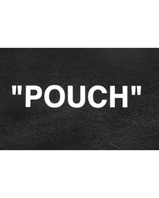 This Off-White small black leather pouch is perfect for storing your essentials. The clutch style features a quote theme with the text "FOR DOCUMENTATION PURPOSES ONLY" printed in white. The pouch is lined with leather and has enough space to store your phone, keys, and other small items. The brand name "Off-White" is embossed on the front of the pouch. It's a unisex accessory suitable for both men and women.
