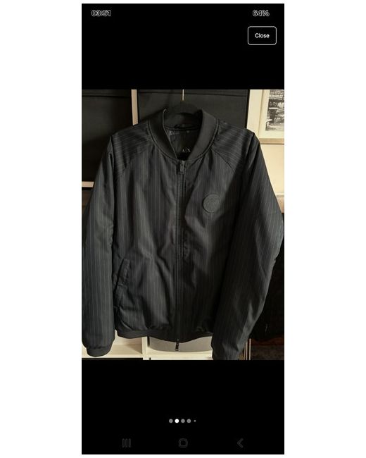 This is an Armani Exchange bomber jacket for men in size large. The jacket is made of cotton and comes in a sleek black colour, perfect for autumn and spring seasons. It features a classic bomber jacket style, making it a stylish addition to any wardrobe. Ideal for casual or smart-casual occasions, this jacket from Armani Exchange offers both comfort and sophistication.