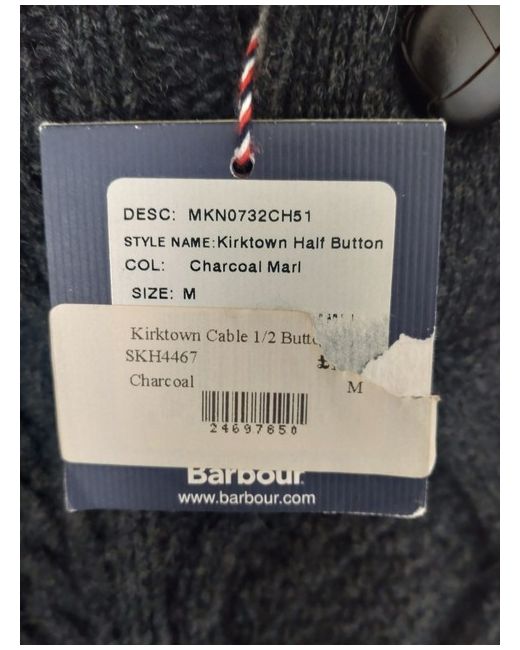 Men's Gray Kirktown Half Button Cable Knit 100 Wool Charcoal Marl Sweater M