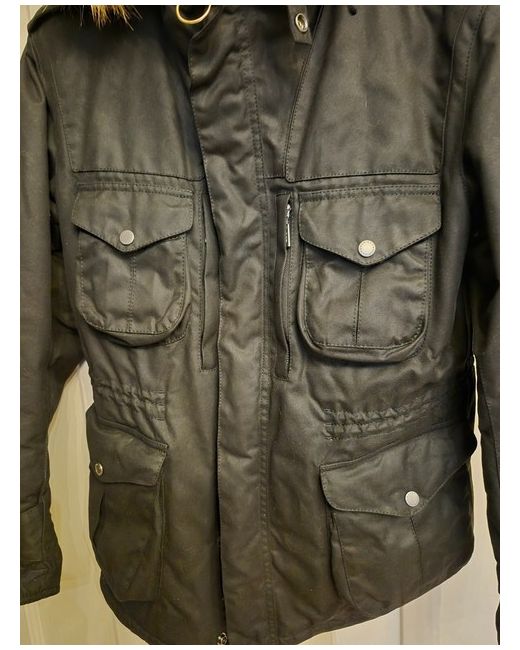 Brand new, never been worn, Barbour waxed mans jacket with hood.Hood and fur can be separated from the jacket as you wish.Strickly no returns acceptable, please ask any questions or for more images.This is a genuine, unworn item.