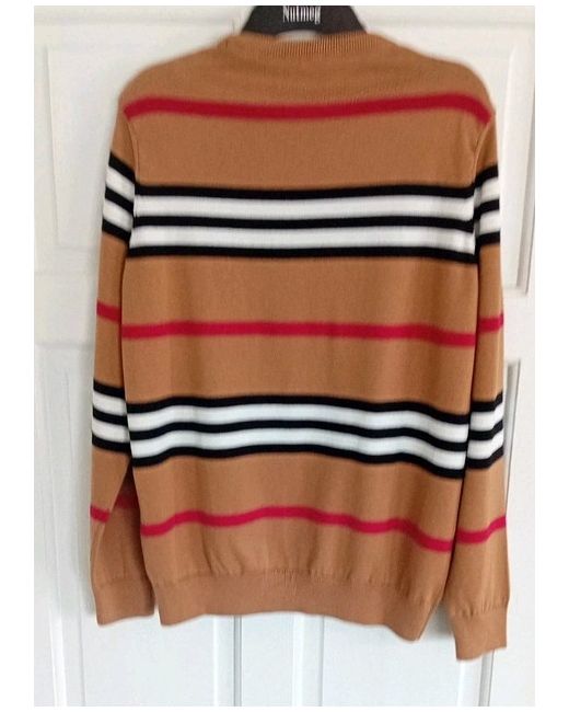 This Burberry men's sweater in size medium is a stylish and versatile addition to any wardrobe. Made from cotton knit fabric, this brown sweater features long sleeves and a classic sweater style. With the Burberry brand known for its quality and sophistication, this sweater is sure to be a standout piece for any man looking to make a statement with their clothing. Measurements Pit to pit 21 inches Length 28 inches