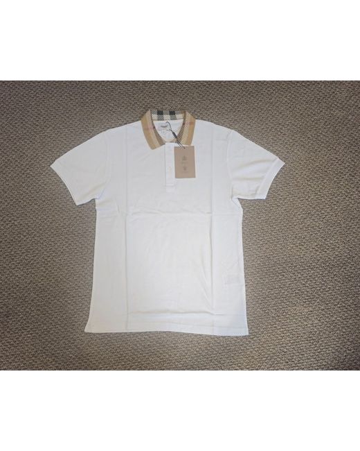 The Burberry Polo Shirt is a classic and stylish choice for the modern man. Made from comfortable cotton material, this short sleeve shirt features a collared neckline and button closure, perfect for casual occasions in the summer season. With its iconic Burberry Brit design and designer theme, this polo shirt exudes a sophisticated charm that is sure to make a statement. The regular fit and white colour add a timeless touch to this wardrobe essential. Whether worn alone or layered, this Burberry Polo Shirt is a versatile piece that will elevate any outfit.