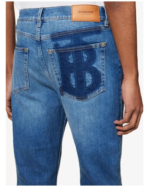 Men's TB Monogram Patch Straight Leg Regular Fit Stretch Denim Jeans W34
