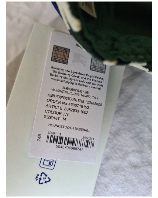 Men's Green Ivory And Houndstooth Six Panel Baseball Cap Authentic.