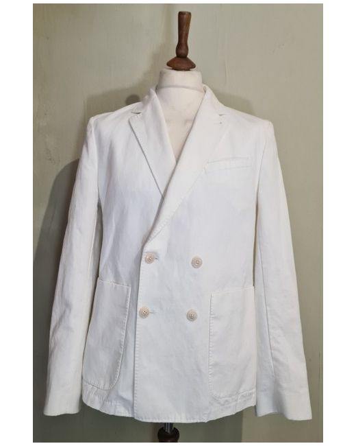 Ted Baker London Ithon Ottoman Cotton & Linen Double Breasted Blazer Jacket. Double Breasted. Composition - 57% Cotton, 43% Linen. Size - 4, uk 42, eu 52. Colour - White. Half Floral Print lined.