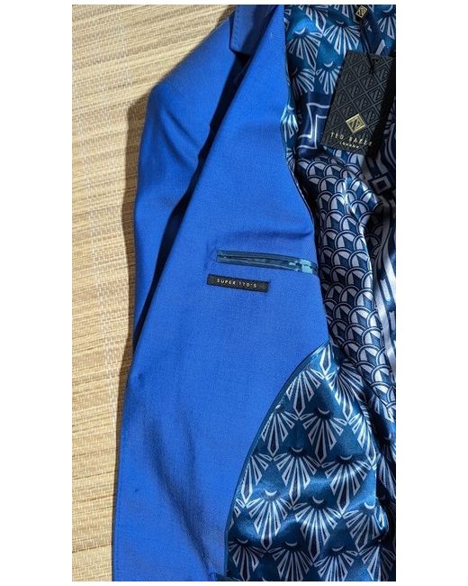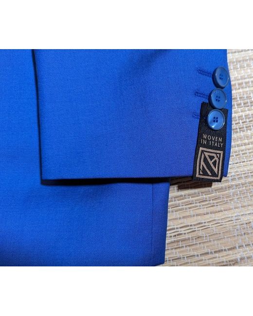 The royal blue wool material is perfect for any wedding or party/cocktail event. The jacket features a single-breasted cut with a two-button front button style and a three-button sleeve button style.