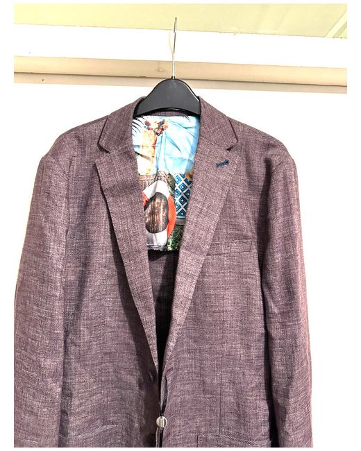 Men's Grid Cross Hatch Linen-Blend Tailored Dark Blazer 250 Authe