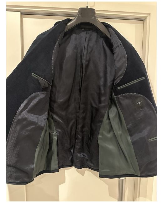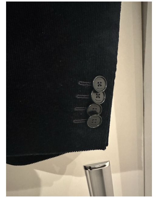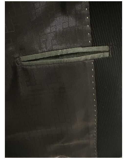 Body lining - 50% Acetate, 50% Viscose. Single breasted button closure detailing ( as shown in picture). Colour is Green and is a size Large or 40r. Long sleeved with a shawl collared detailing ( as shown in picture).