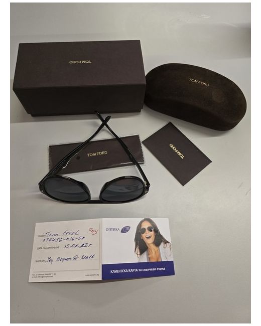 The product is a pair of Tom Ford sunglasses, known for their high-quality design and craftsmanship. Featuring sleek frames and stylish lenses, these sunglasses exude luxury and sophistication. With the brand's signature attention to detail and impeccable style, these sunglasses are a must-have accessory for anyone looking to make a fashionable statement. Perfect for adding a touch of elegance to any outfit, Tom Ford sunglasses are a symbol of timeless chic and eye-catching style.