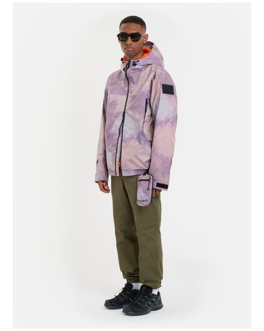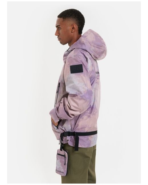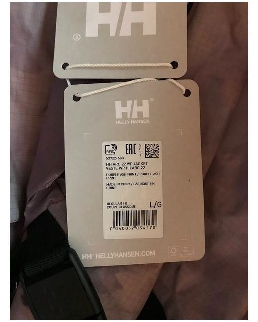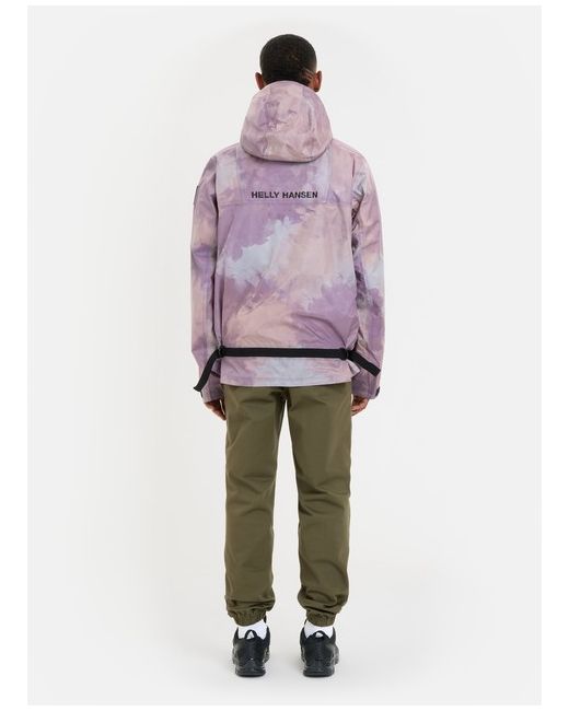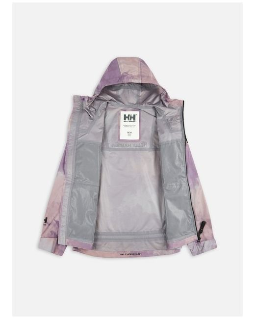 Helly Hansen Purple Ash Print Arc 22Waterproof jacket. 100% Polyester. Model is 184 cm tall and wears a size L. Armpit to armpit : 23".