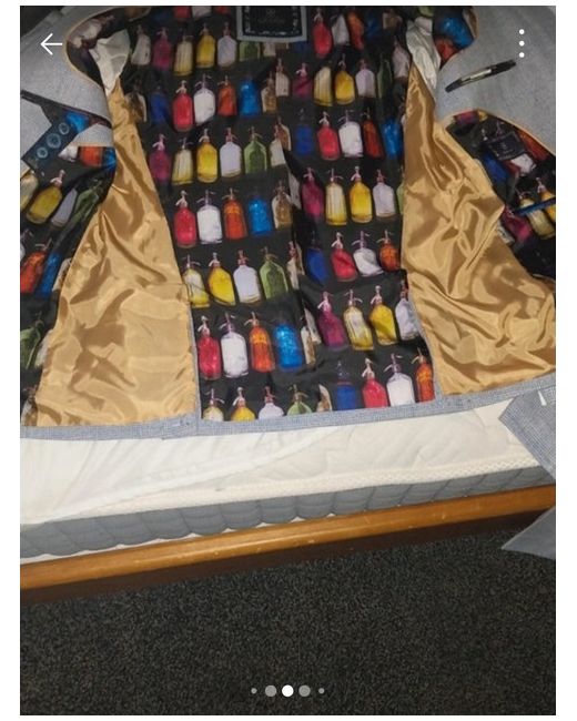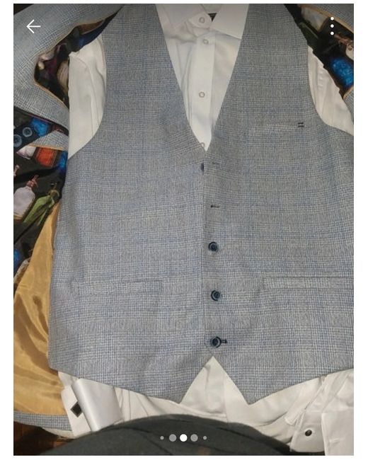 Mens three Piece suit Worn for only 2 hours Trousers are slim fit size 32R Jacket 40R slim fit Waist coat 40R Pale blue with navy trim