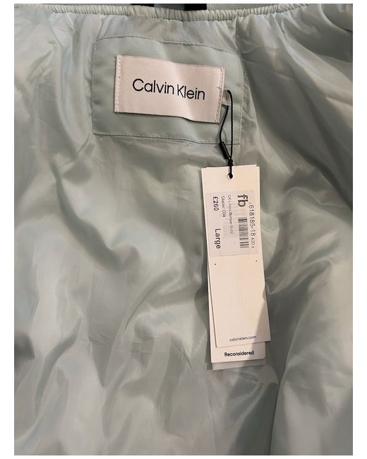 Brand new with tags Mens Size Large Calvin Klein bomber jacket Colour is ‘Glacier’ -a very light silver/grey/blue colour Was £260 new
