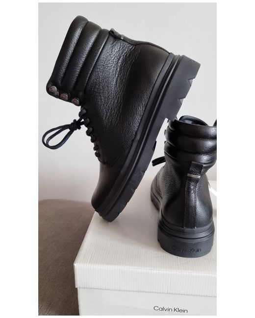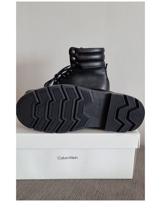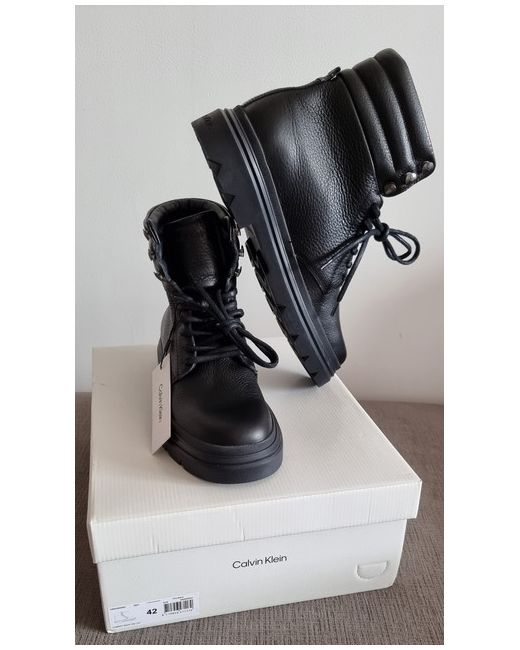 Calvin Klein Combat Boot HM0HM00667 brand logo, solid colour, fabric inner, laces, round toeline, square heel, lug sole, contains non-textile parts of animal origin, the leather used comes from responsible production certified via leather working group., combat boots. New with box, size uk 8.