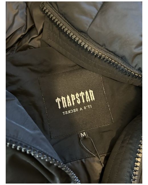 This Trapstar blackout jacket in size M is a stylish puffer jacket made of polyester, perfect for casual wear during the winter season. It features a zip closure, black colour, and insulation material to keep you warm. The jacket is designed for men and is suitable for walking activities. Made in the United Kingdom, this item is brand new with tags.