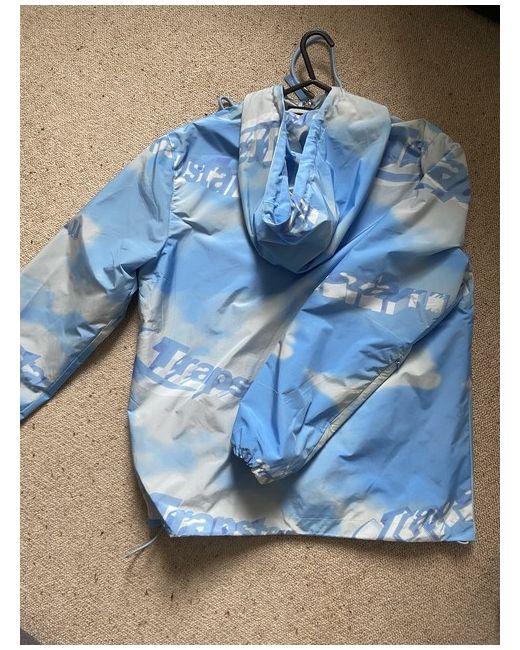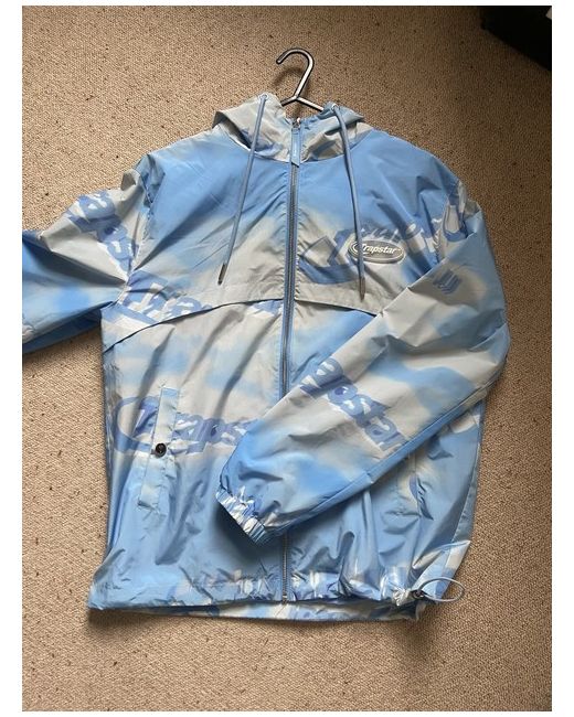 blue and grey trapstar hyperdrive cloud windbreaker fits true to size with toggles in the waist no refunds fast shipping