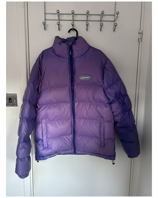 Introducing the Trapstar Colour Changing Coat, a stylish and versatile addition to any wardrobe. This coat features a full zip closure, making it easy to slip on and off. The outer shell is made from high-quality polyester, ensuring durability and comfort. With a vibrant blue colour and colourful logo accents, this puffer jacket is perfect for men who want to make a statement. The size is regular, suitable for most individuals, and it comes in a size M. Whether you're heading out on a chilly day or just want to add some flair to your outfit, the Trapstar Colour Changing Coat is the perfect choice. Only worn ones. Perfect condition