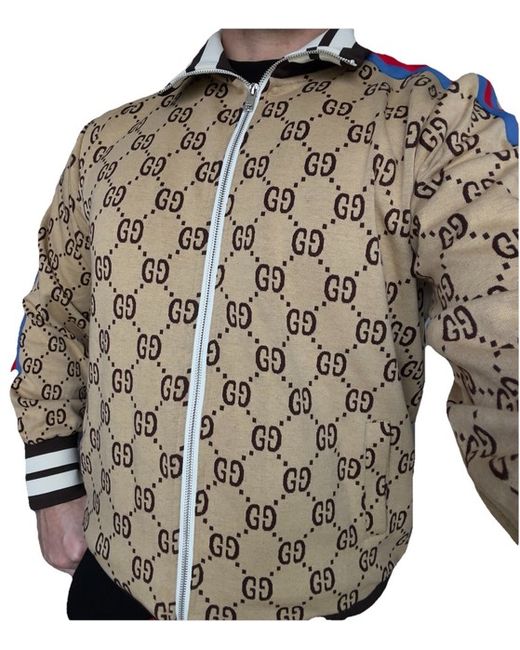 This copy 1:1 Gucci tracksuit is a stylish 2-piece set made from cotton with a jacquard fabric type, featuring long sleeves and a zip closure. Designed for men, this activewear set is in a multicoloured design with the iconic Gucci logo accents. Made in Italy, this designer tracksuit is machine washable and available in a size 2XL ( UK size L ) making it a perfect addition to any fashion-forward man's wardrobe. FITS SIZE - L