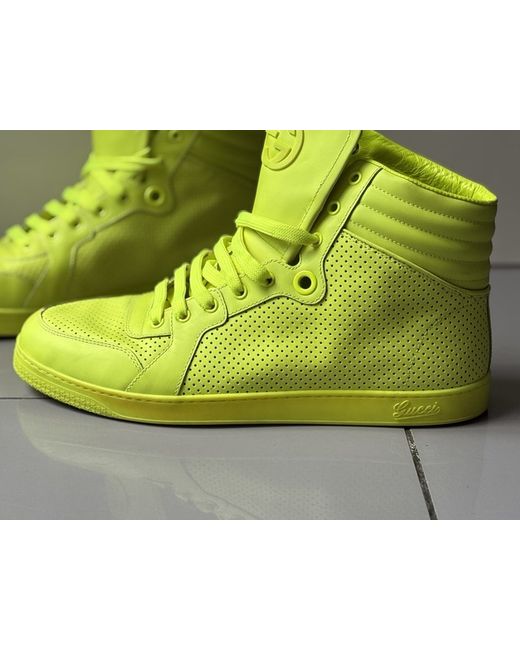 The Gucci trainers in UK size 11 are a stylish and comfortable choice for casual occasions. Made in Italy from leather, these lace-up sneakers feature a neon colour and the iconic Gucci GG logo, adding a touch of designer luxury to your look. With a focus on comfort and quality, these trainers are perfect for the modern man looking to make a statement with their footwear. The Gucci brand ensures both fashion-forward style and premium craftsmanship in every pair of shoes.