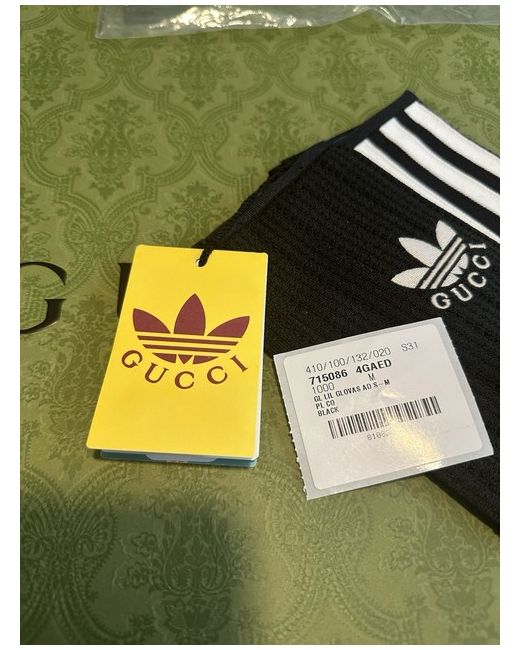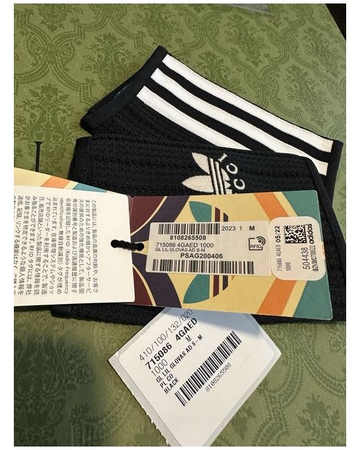 These Gucci Adidas Black Knitted Gloves in size medium are a stylish and versatile accessory for both men and women. Made from 100% cotton, these gloves feature a classic black colour and a knit fabric type, making them a comfortable and warm choice for the colder months. The collaboration between luxury brand Gucci and sportswear giant Adidas adds a touch of sophistication to this practical and essential item, making them a must-have for any fashion-forward individual's winter wardrobe.