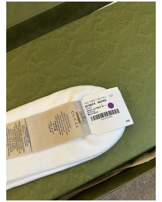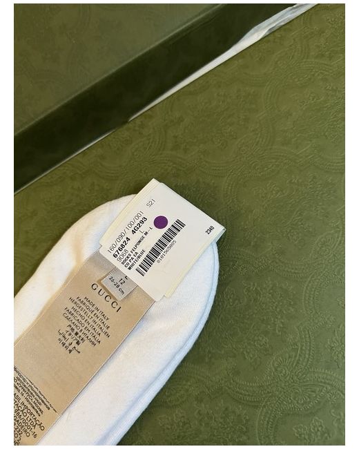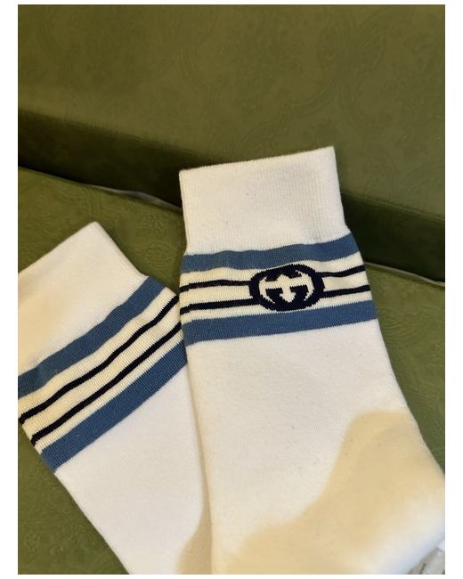 These Gucci socks in size Large are designed for Unisex Adults, made of white cotton material. They are crew socks, suitable for casual wear.