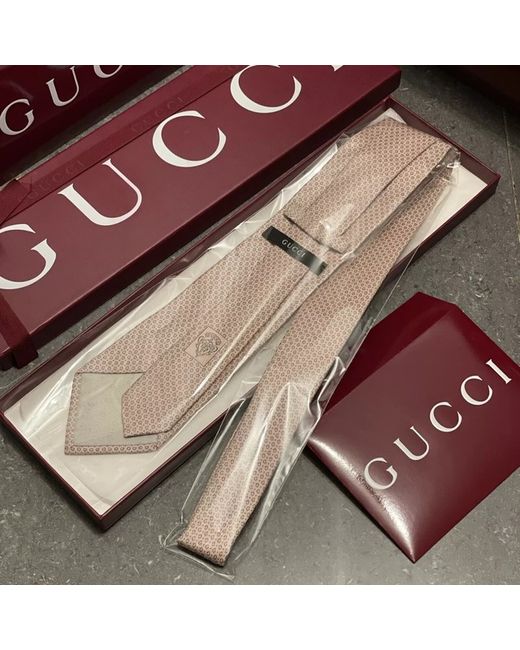 Box and cards not included. The pink tie features the iconic Gucci logo, adding a touch of luxury to your outfit.