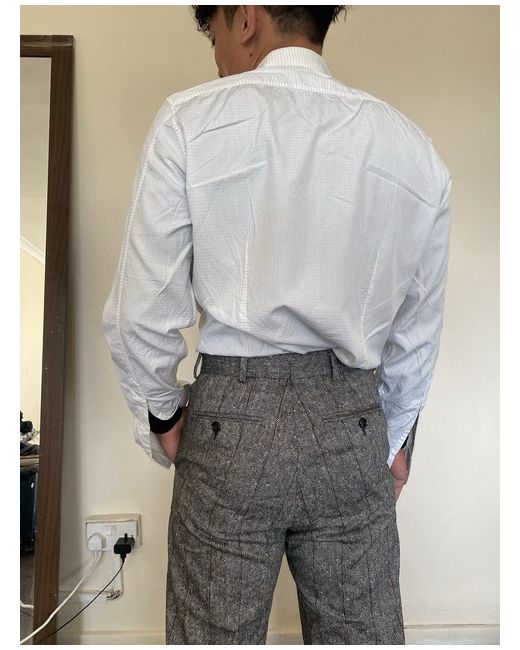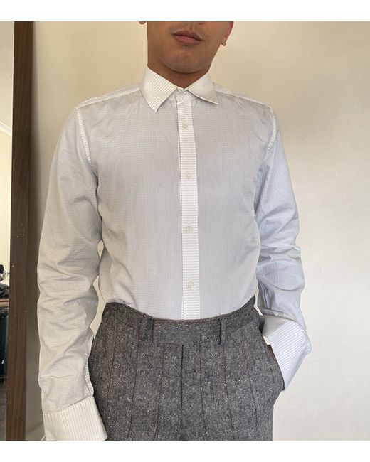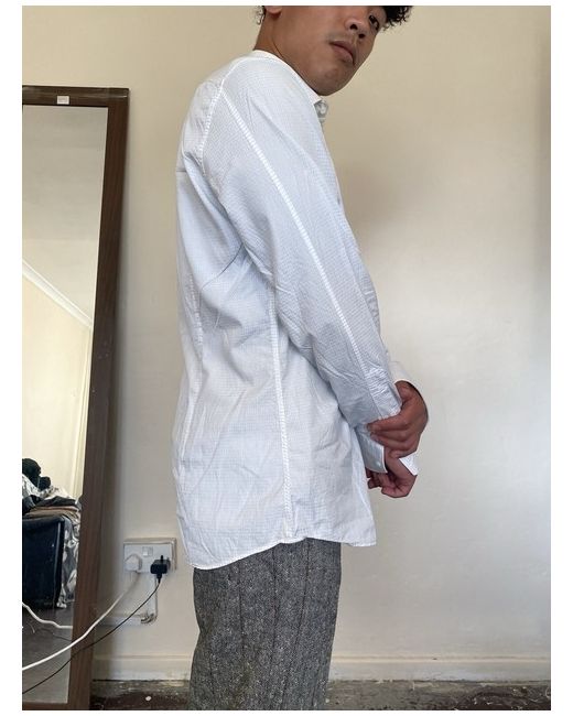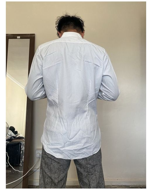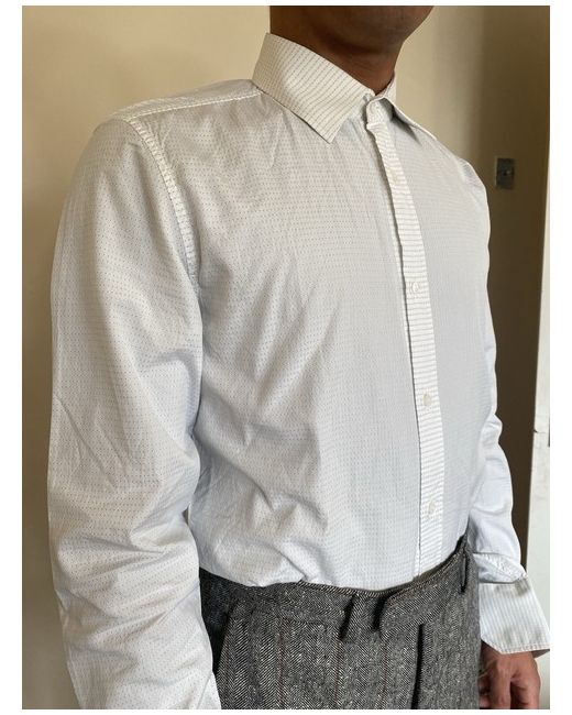 Gucci white shirt new slim 39 White & small grey pattern with buttons Slim fit 100% cotton model size : neck -14,5 in chest -35,4 in height-5,5 ft 8uk