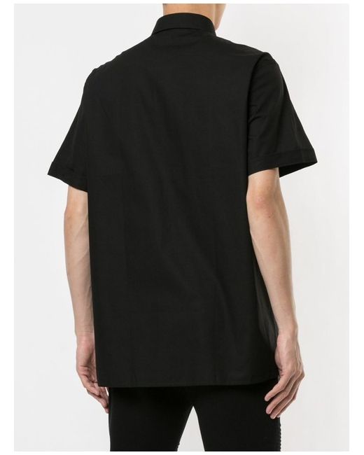 Black cotton logo print shirt from Versace Jeans featuring a classic collar, a front button placket, short sleeves and a straight hem. Machine wash. Material: Cotton 100%.