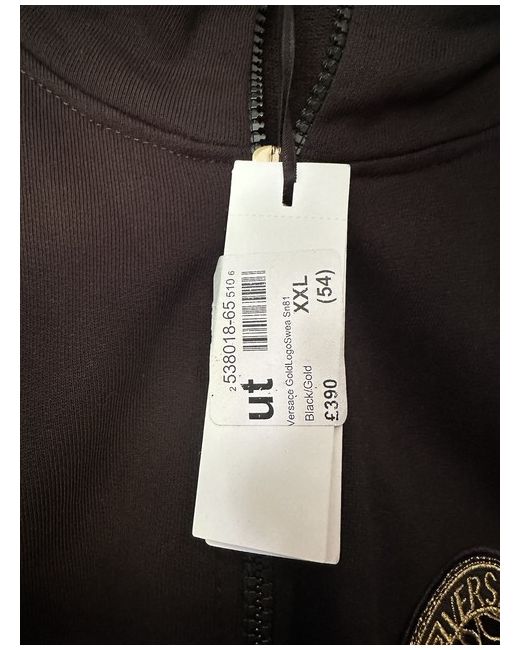 Introducing the stylish and sophisticated Versace Zip Jumper for men. This high-quality jumper is made with premium materials and features a full zip design with unique accents. The black colour of the jumper is perfect for any occasion and will make a statement wherever you go. The Versace brand is well-known for its luxurious and fashionable designs, and this jumper is no exception. It's perfect for regular wear and will keep you comfortable and stylish all day long. Whether you're going out for a night on the town or just running errands, this jumper is the perfect addition to your wardrobe. Never been worn, still has tag