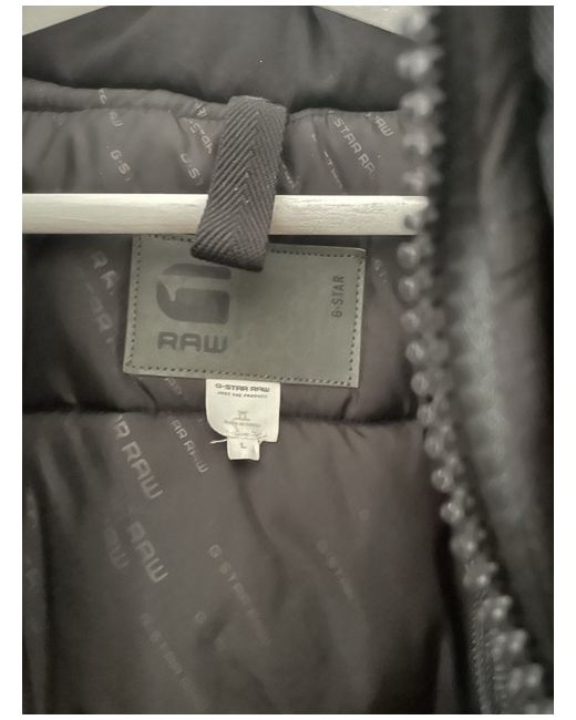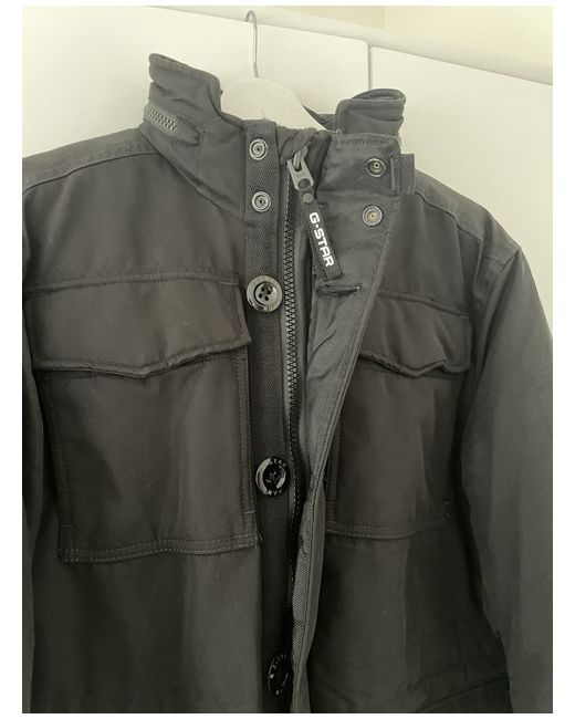 This G-Star Raw jacket for men in size L is a new, unworn item. It features a black denim outer shell with polyester insulation and lining. The style includes elements of a parka, quilted, bomber, and military jacket. The jacket is windproof, has a full zip, pockets, and is insulated for added warmth. Heavyweight field jacket