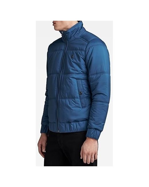 This padded quilted jacket is cut from a water repellent fabric and is stitched through horizontally. The raised collar is finished with a ribbed fabric on the inside. Quilted, padded design. A woven tape indicates the pocket entrance at the waist and has a snap button closure.