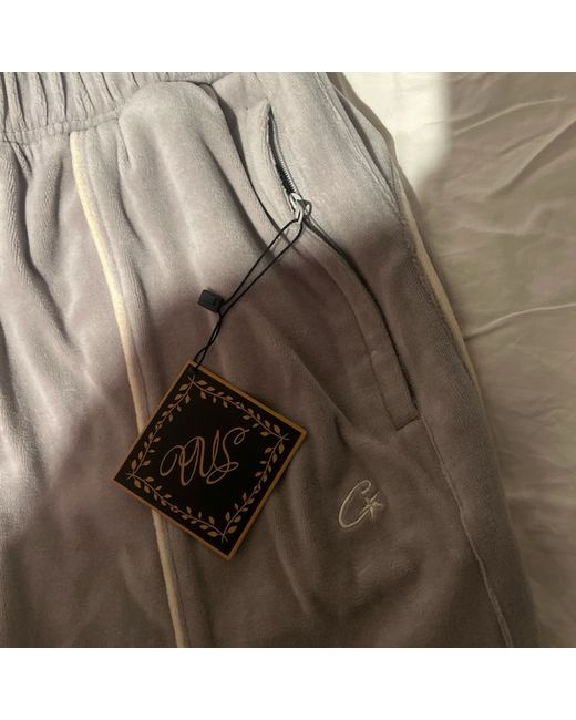 BRAND NEW WITH TAGS!!! The Men’s Corteiz Grey Bottoms are a stylish pair of jogger-style trousers for men, perfect for casual occasions. Made by the brand Corteiz, these bottoms feature 4 zip up pockets, a drawstring closure and come in a sleek grey colour. The regular fit and size S make them an ideal choice for men's everyday wear, offering both comfort and style in one versatile garment.