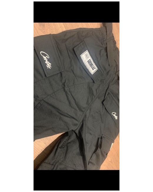 Introducing the Corteiz Cargos in size medium, perfect for the fashion-forward man who values both style and comfort. These trousers are crafted from high-quality materials, ensuring durability and long-lasting wear. The sleek black colour makes them a versatile addition to any wardrobe, ideal for both casual and formal occasions. Brand new never worn, 100% legit